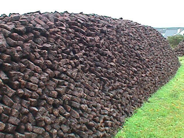 Near Achill Sound - turf cut, dried, drawn from the bog and stacked ready to be burned during the winter.