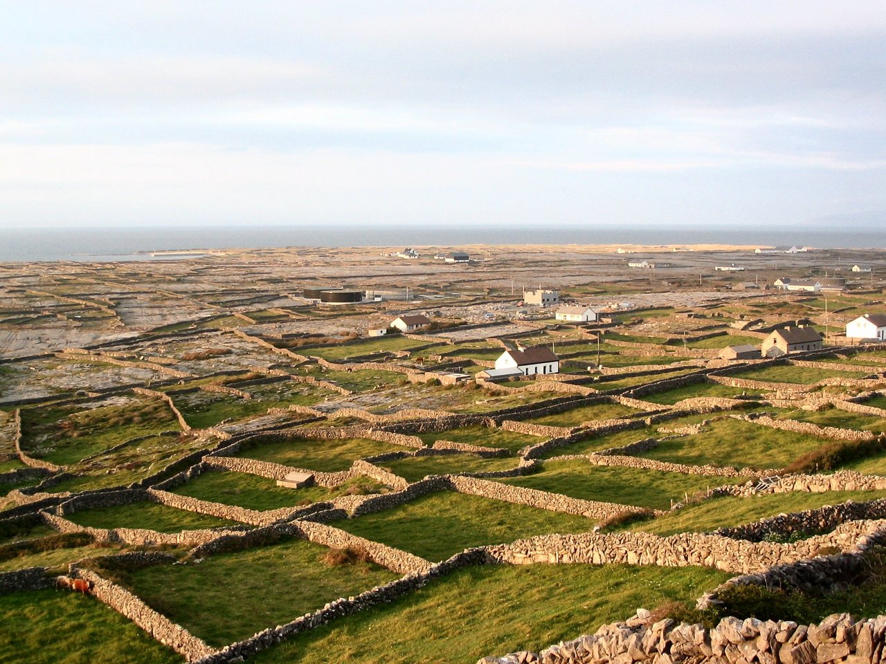 Inis Meáin - low sun on the pattern of small fields bounded by limestone walls