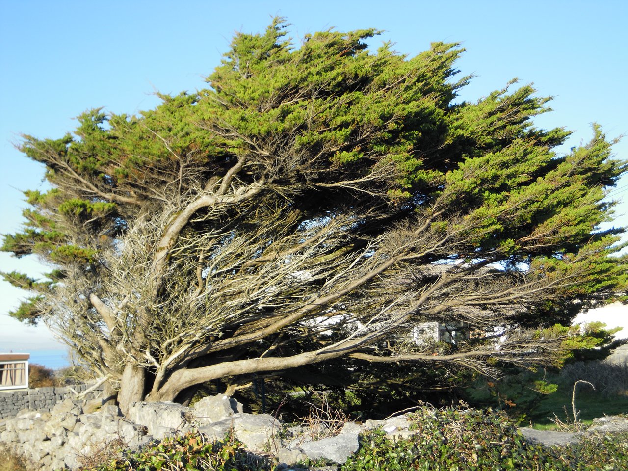 Arainn - Inishmore - as witnessed by this conifer the island is exposed to wind coming straight in off the Atlantic.