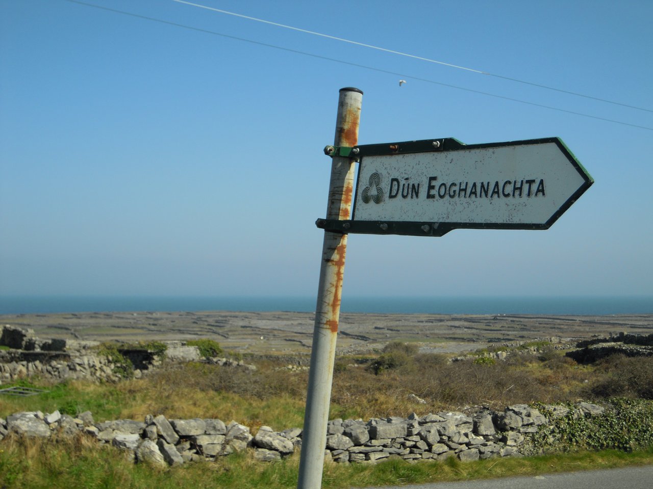 Arainn - Inishmore - sign for Dún Eoghanachta hilltop circular stone fort