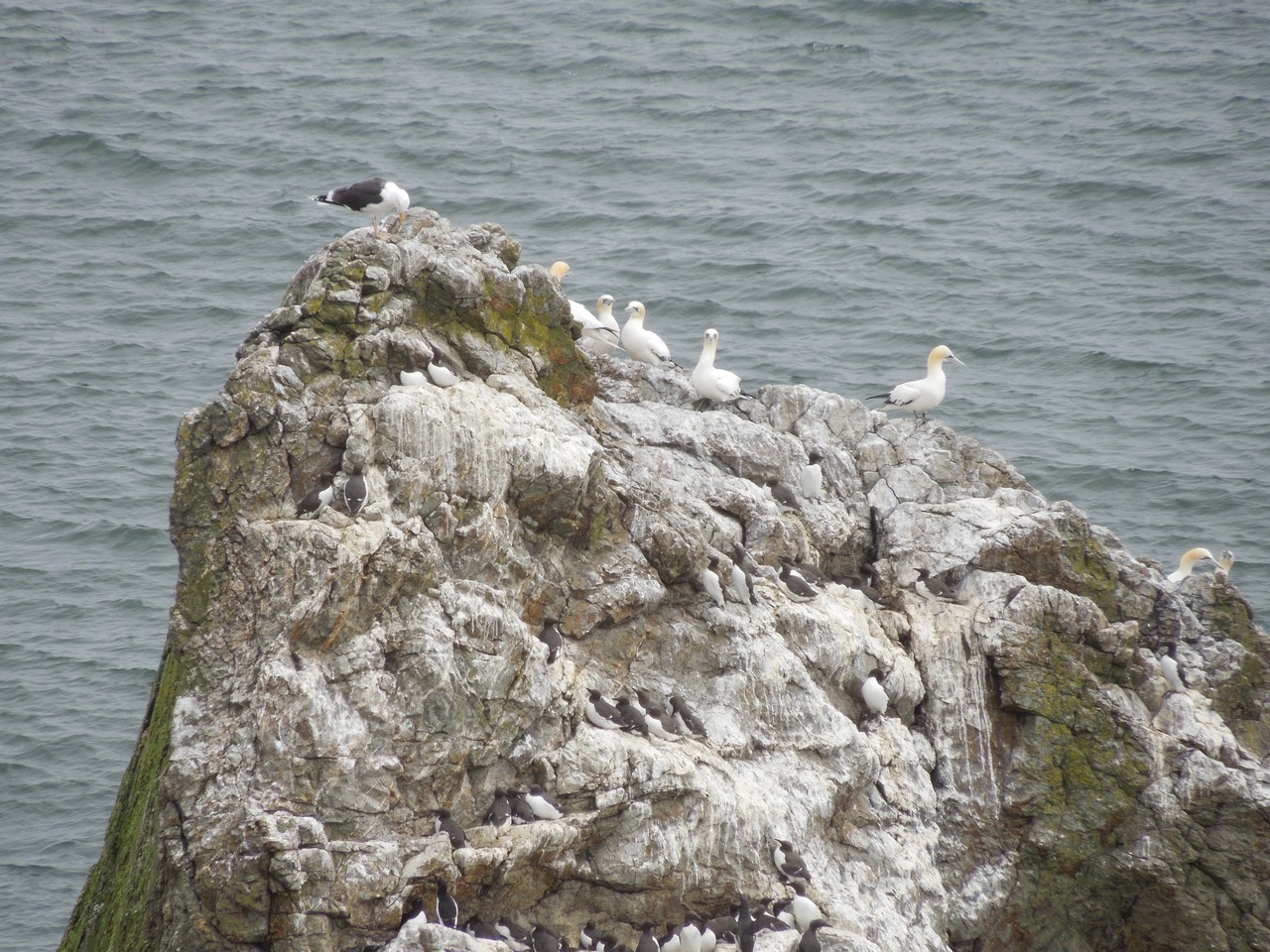 Ireland's Eye - on top - a black backed gull and gannets, below - guillemots