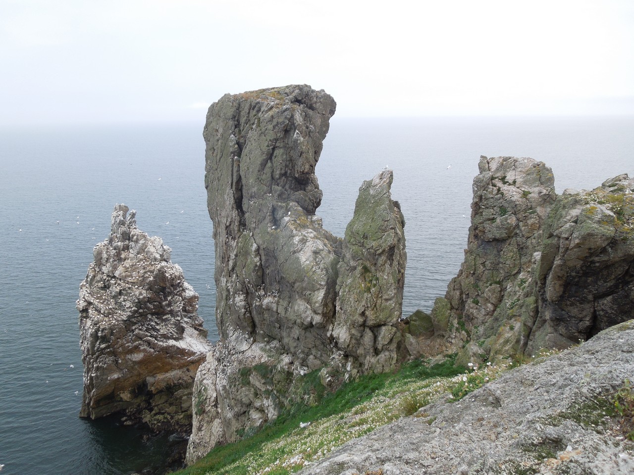 Ireland's Eye - "The Stack", crowded with nesting seabirds, is at the left of this photo.