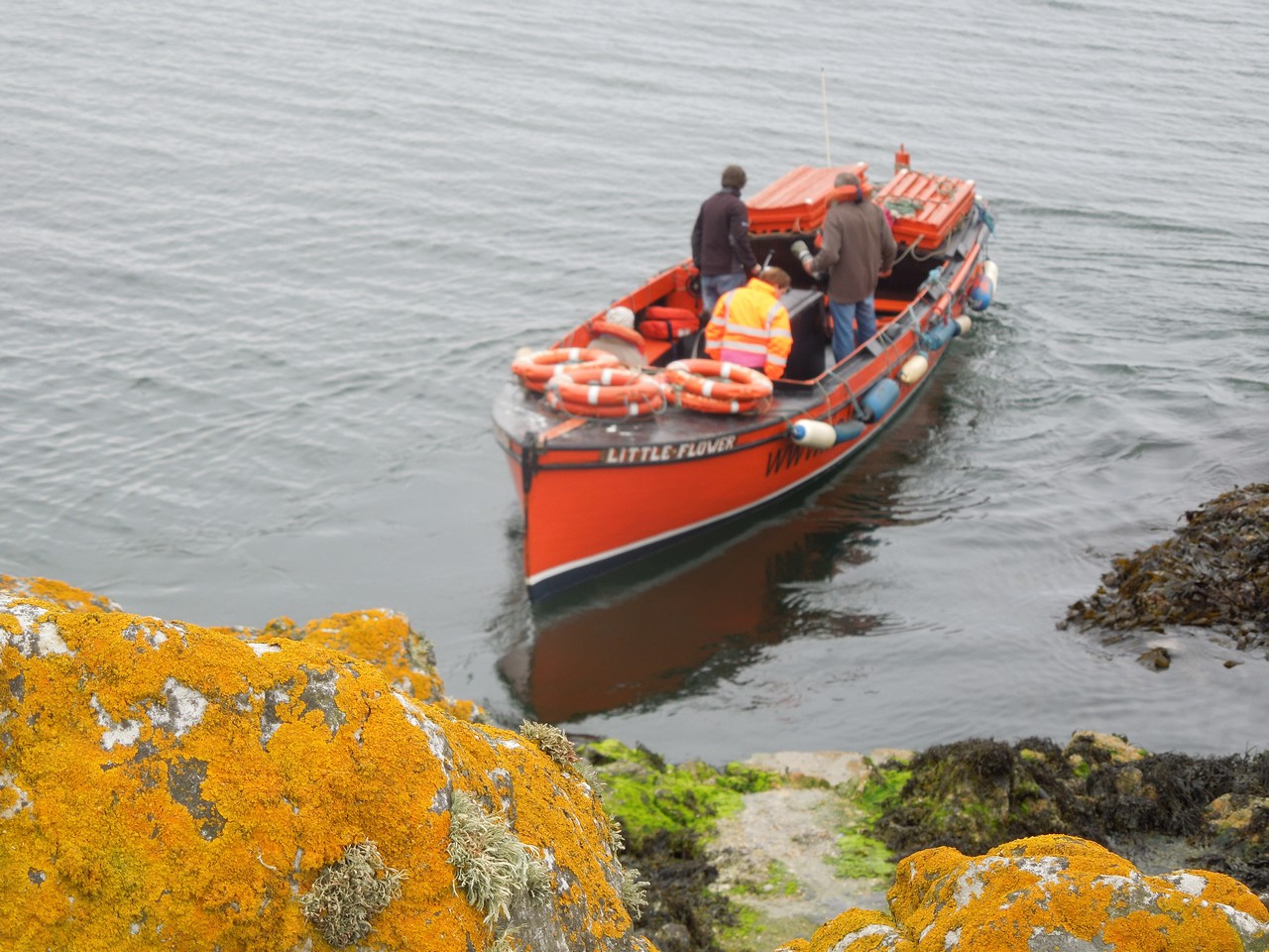 Ireland's Eye - The M.V. Little Flower off the landing place on Ireland's Eye. Built 1922, has a 65hp inboard engine and is licensed to carry up to 30 passengers.