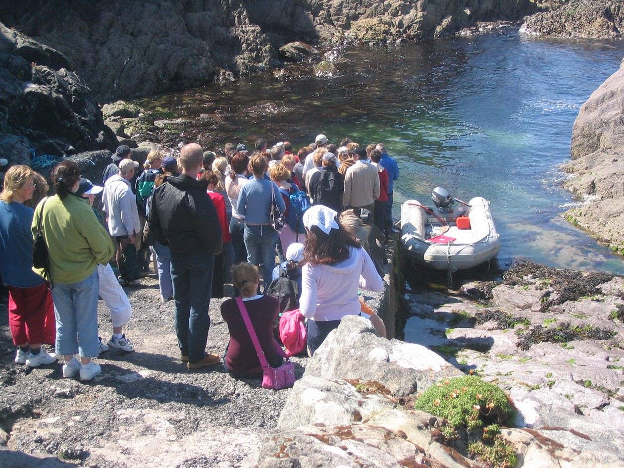 Blaskets - at the landing place on Great Blasket waiting to be taken to the ferry by rubber dinghy.