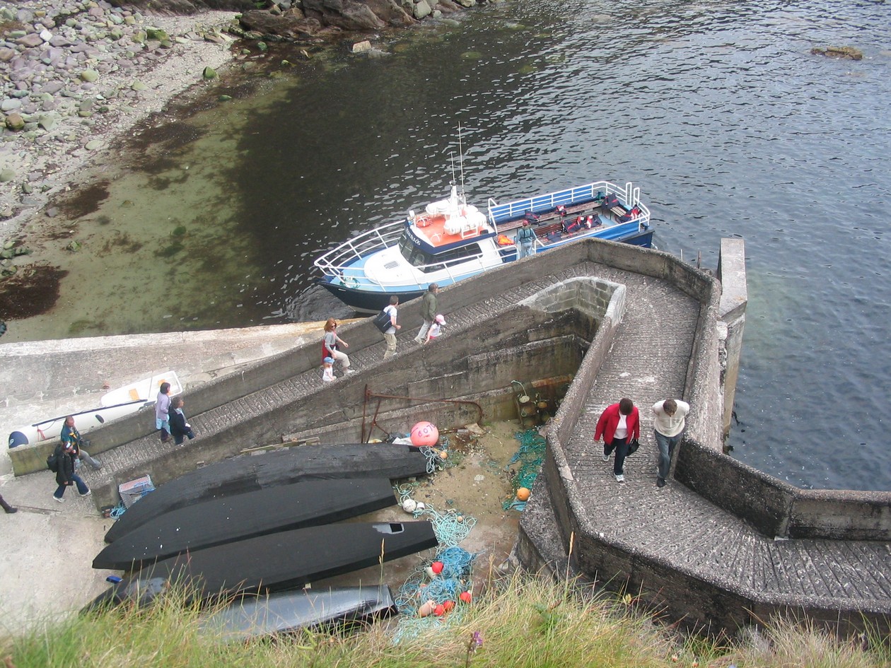 Blaskets - Disembarking at Dún Caoin for the steep walk up the ramp to the car park. The walkway is too narrow for vehicles.