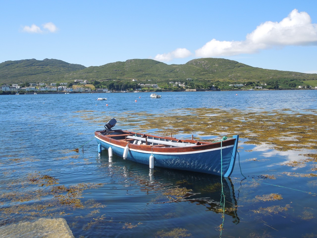 Inis Ní - view of Roundstone village with Errisbeg mountain behind.