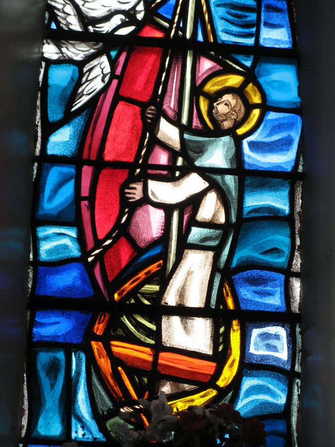 One of the stained glass windows in the church - designed by Patrick Pollen and presented to the islanders by Derek Hill.