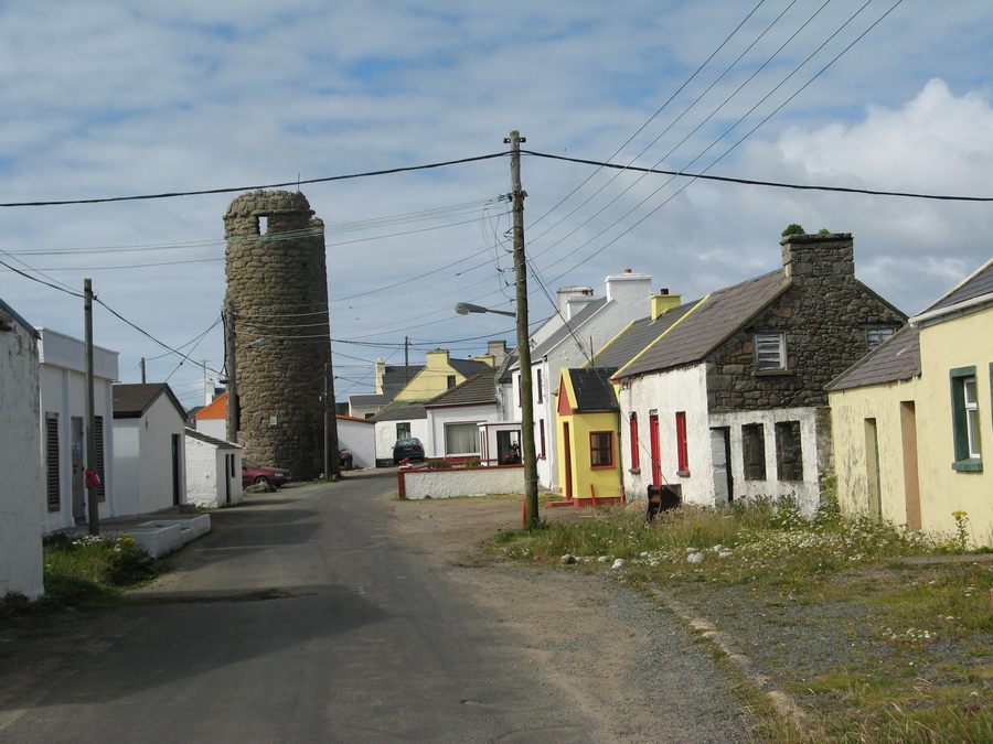 The Round Tower or Cloigtheach (bell tower) built in the sixth or seventh century is the only surviving round tower in Donegal. Built of local granite beach stones, at 12.8m tall it is relatively short for a round tower.