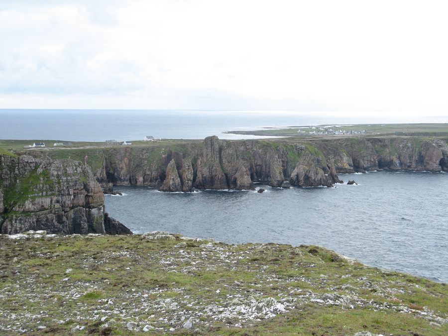Baile Thoir is on the left and Baile Thiar on the right with the narrow neck of neck of land between them threatened by the sea.