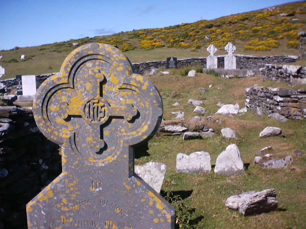 Dursey - the island graveyard at the eastern end fo the island, the uncarved and uninscribed stones are also mark graves.