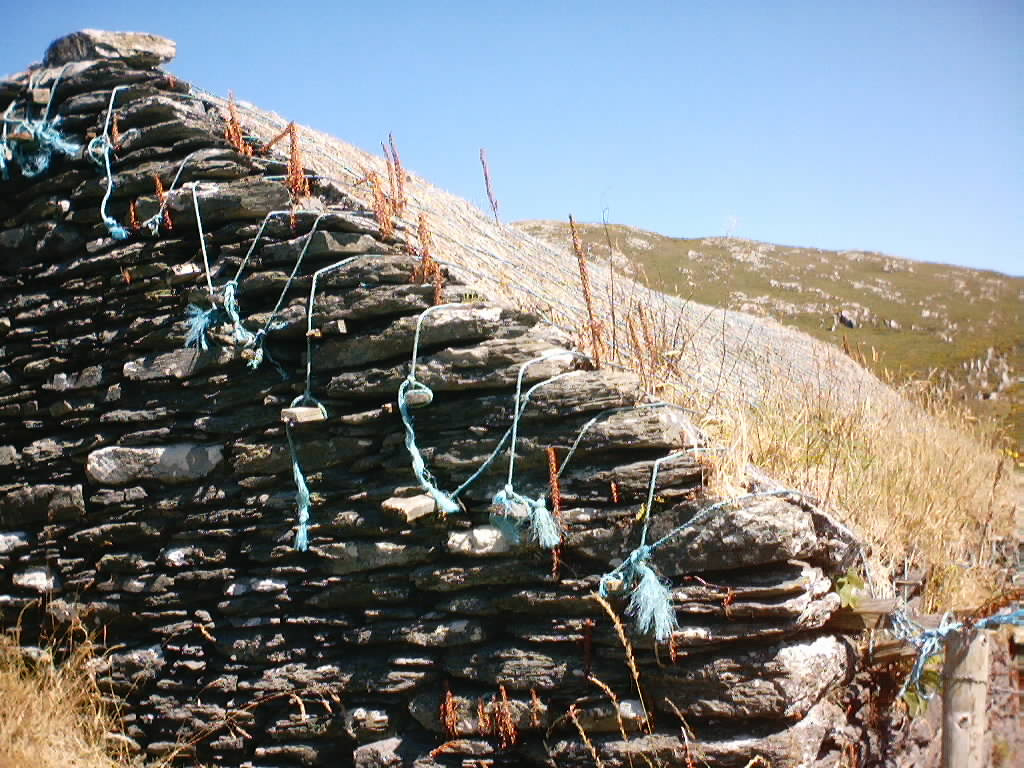 Dursey - A decayed thatched roof tied down for protection from the wind