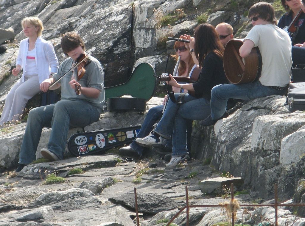 Inishkea South - Manx musicians playing beside the quay.