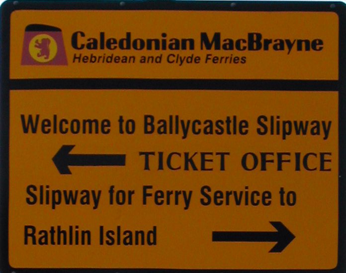 Sign in Ballycastle on the mainland.