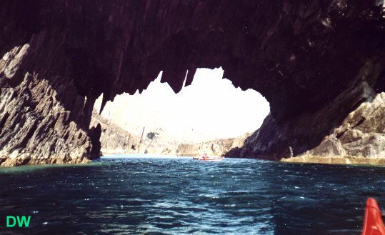 A sea kayaker's view of a sea arch at south eastern point of South Harbour