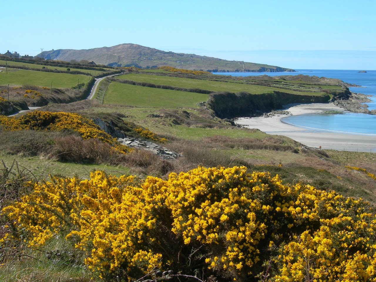 Sherkin - Trá Bhán (white beach) and, in the background beyond the end of the road, Cape Clear.