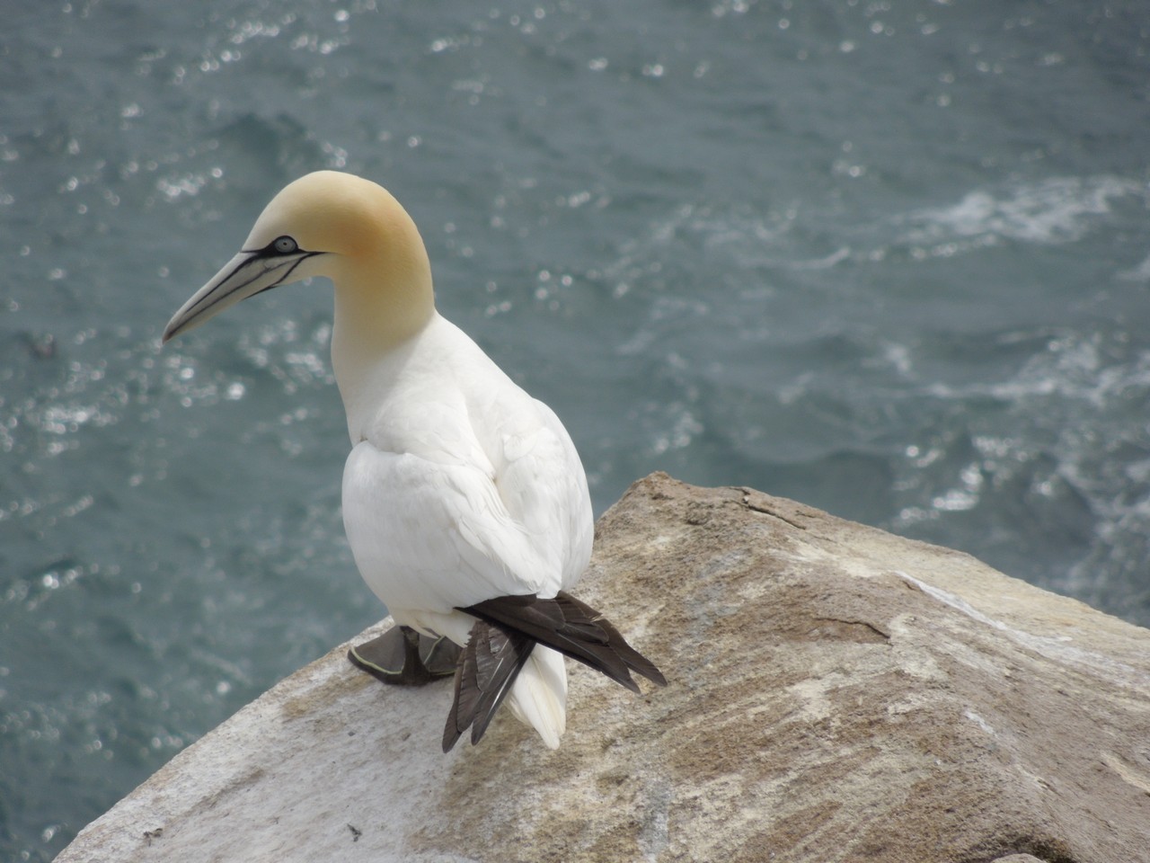 Saltee - Gannet - Morus bassana - Gainead with yellow head, black wing tip feathers and webbed feet