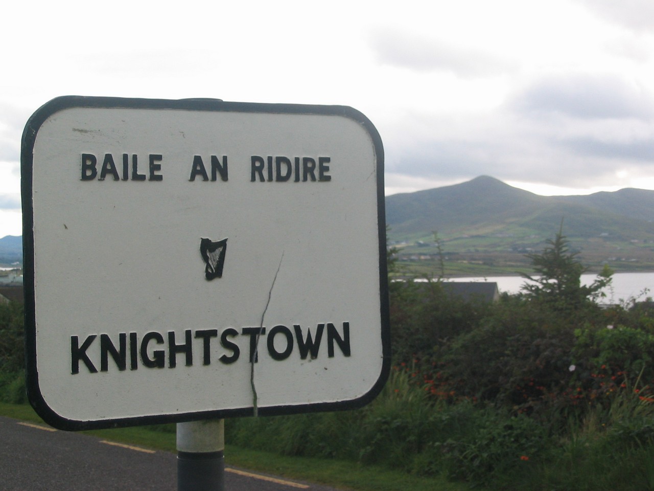 Valentia Island - Knightstown is the main village on Valentia, this style of sign announcing a town or village has long been replaced and is now rarely seen.