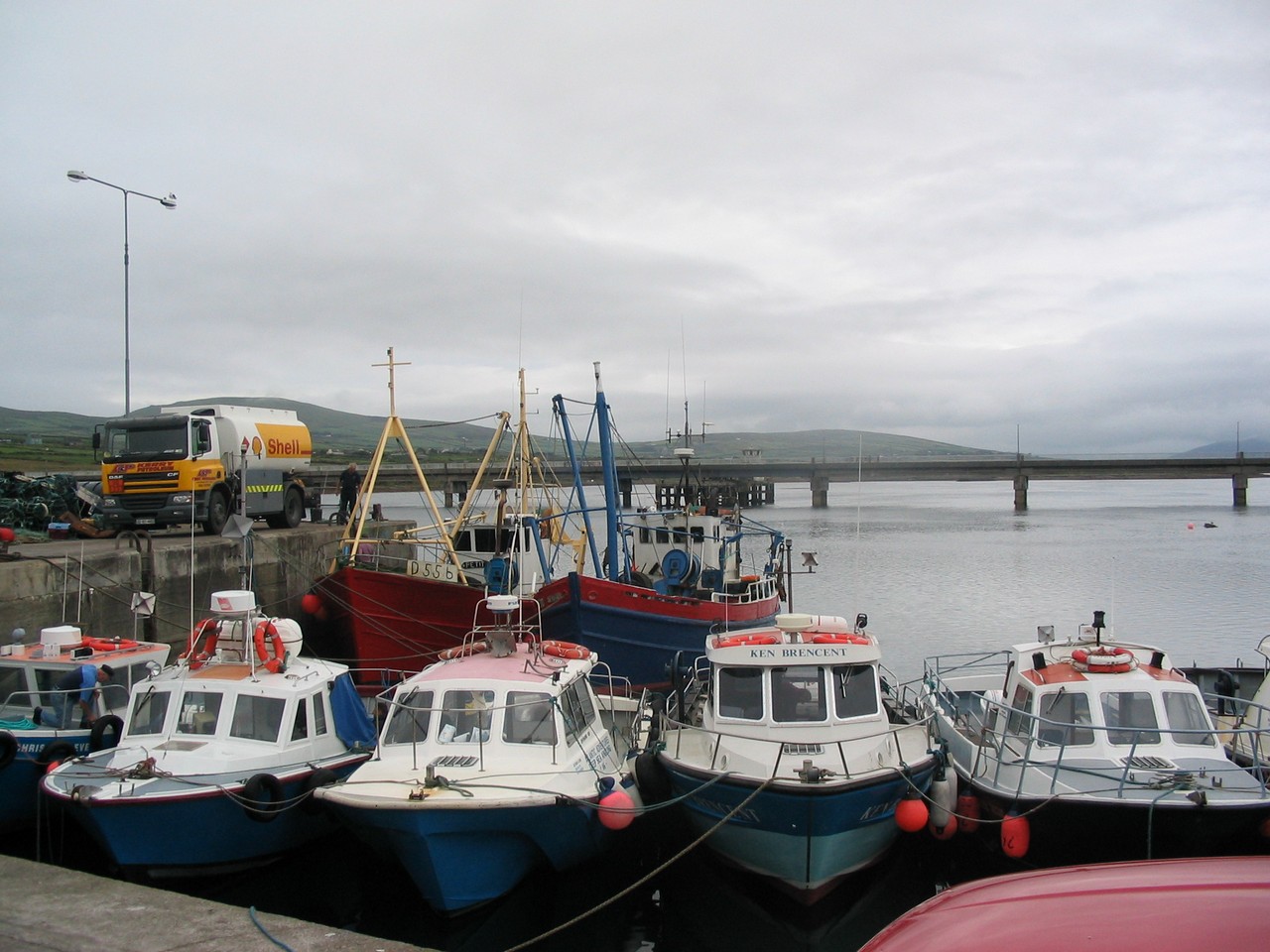 Valentia Island - boats lined up at Portmagee, they are used to take tourists to and from Skelling Micheal